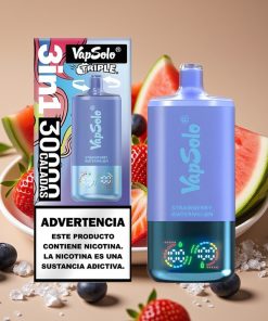VapSolo Triple 30000 Puffs 40ml Capsule Tip Type-C Căpșună Pepene & Afină Gheață